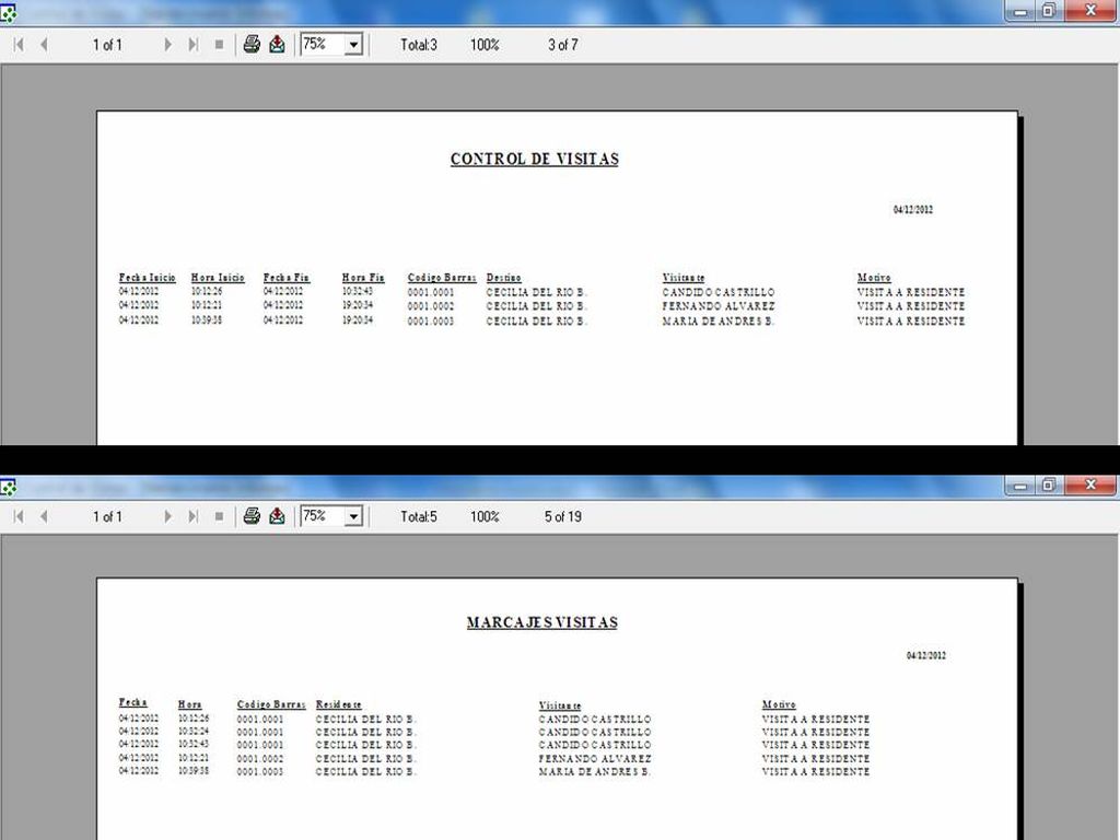 - Podemos generar informes filtrando por residente, visitante o motivo en un intervalo de fechas y abarcar todas nuestras necesidades.
