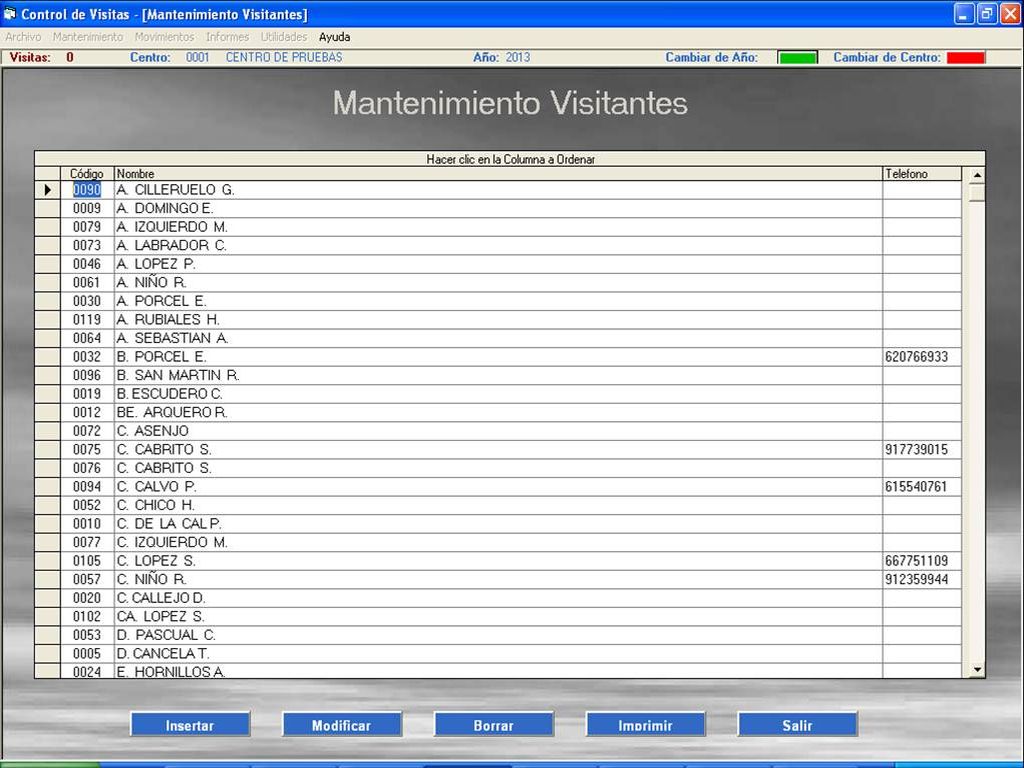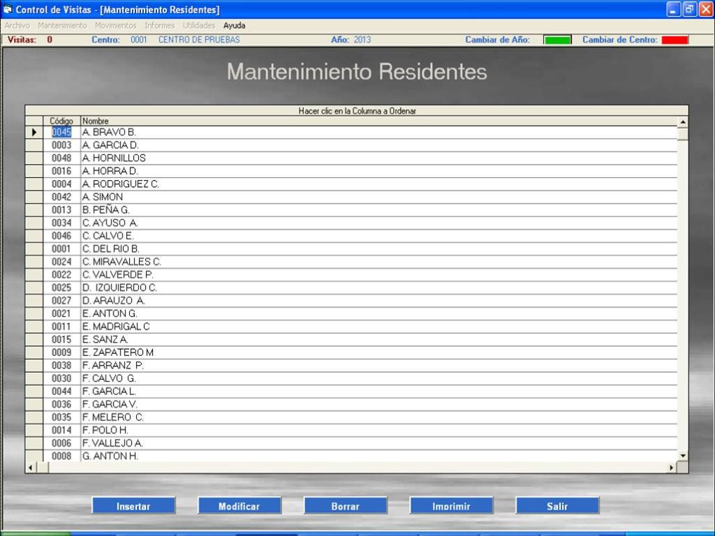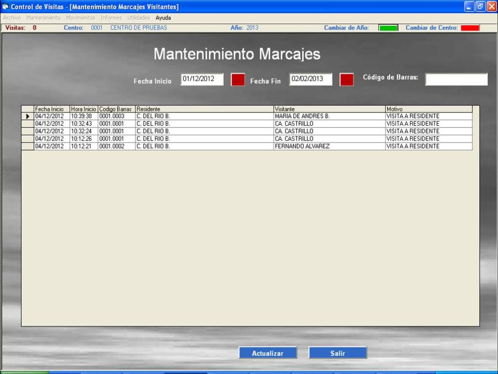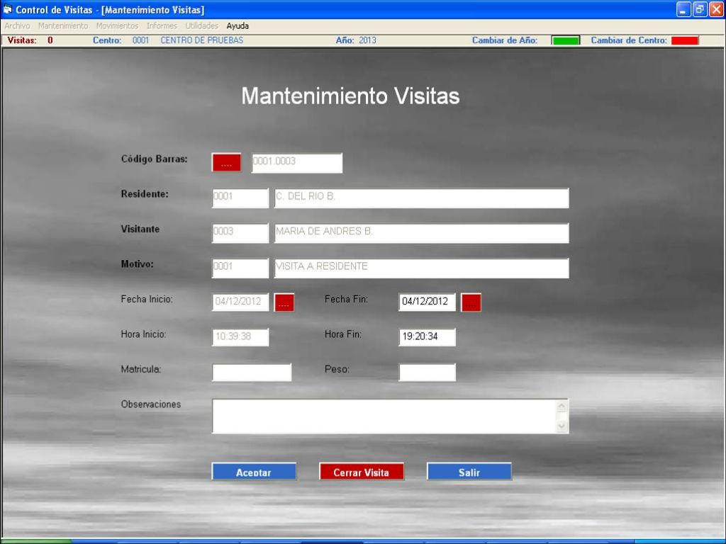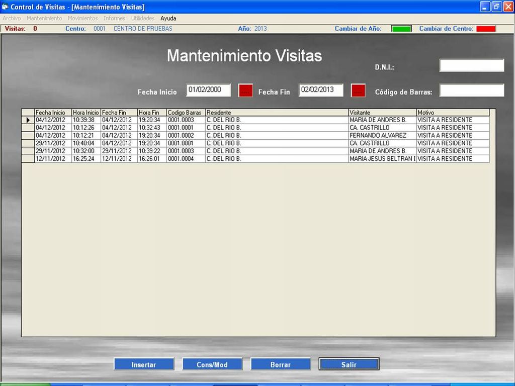 - Las visitas que no tengan fecha fin nos indicará que esa persona permanece en el interior del centro.